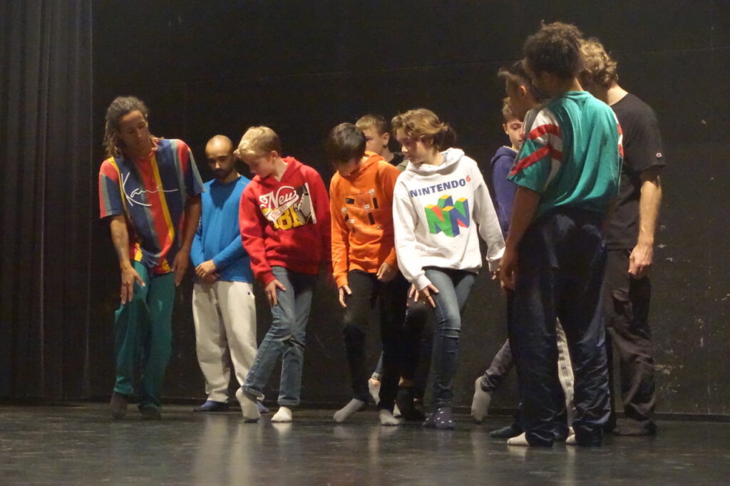 Un groupe de 6 garçons et un autre groupe de 6 filles expérimentent chacun un « morceau » des tableaux de danse que les élèves ont vus dans le 1er temps sous la « conduite » des jeunes danseurs de la compagnie.