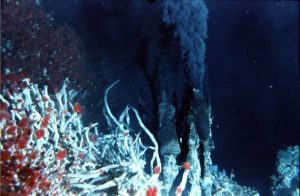 Pour commencer la plongée, Jozée Sarrazin a proposé une mini-conférence sur la vie dans les abysses. A plusieurs km de profondeur, nous avons découvert des volcans, des chaînes de montagne, des fosses, des plaines, des sources hydrothermales et des cheminées hautes de 10m. Il règne ici-bas des conditions de vie extrêmes : très peu de nourriture, pas de lumière, une eau entre 0 et 4°C, une très forte pression… Et pourtant, une biodiversité extrêmement riche s’est développée ! Autour des sources hydrothermales par exemple, des moules, des crevettes et des vers ont su s’adapter et tirer profit des éléments chimiques présents. « Ça se mange », s’intéresse un élève ?
