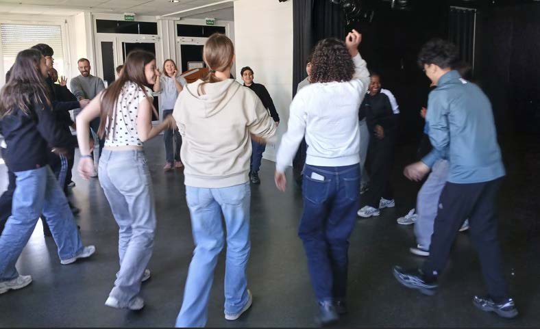 L’après-midi, les élèves ont rencontré pour la première fois les deux comédiens, Audrey et Jérémy, et ces premières heures ont été consacrées à la cohésion du groupe, à la découverte du théâtre, au travail du corps, de la voix, de la confiance.