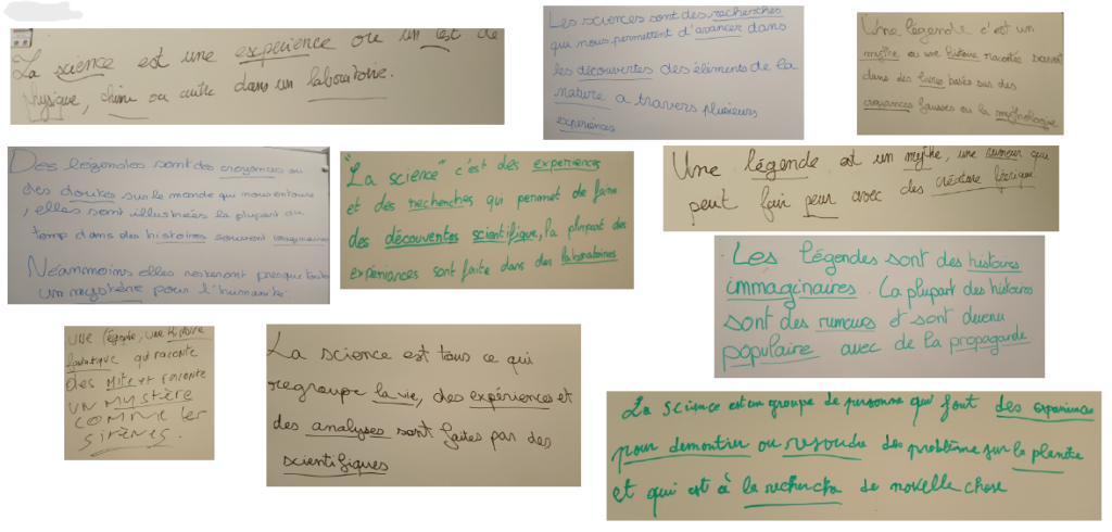 Pour entrer dans le sujet, les élèves ont commencé par réfléchir à la définition des mots légende et science, et voici ce que ça a donné…